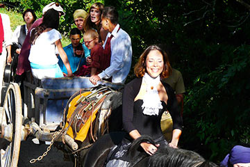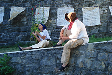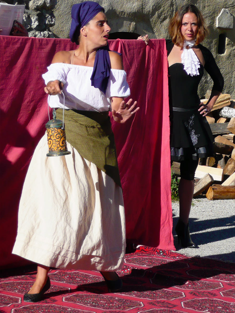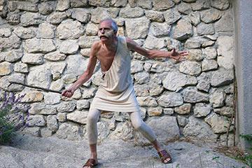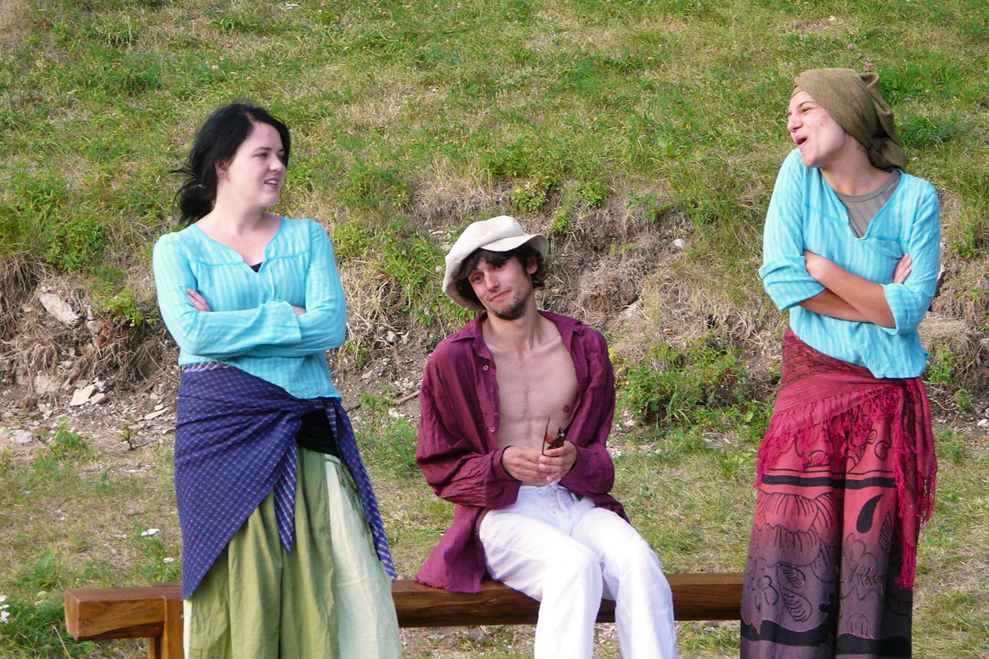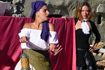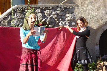 Une image du film de Mnouchkine qui sert de détonateur au projet et lancera le début du spectacle : l’arrivée des comédiens en carriole dans le hameau. Le ton est donné d’une troupe itinérante qui s’apprête à jouer des extraits de deux pièces du maître. Avec Don Juan nous explorons en théâtre déambulatoire 3 variations du rôle phare : une jeune femme, un jeune homme, un homme d’âge mûr. Amphitryon , c’est le désir d’explorer le Molière probablement le plus baroque de toute l’ œuvre. Comme pour le projet précédent c’est aussi le plaisir et le défi de voir les mêmes comédiens passer d’un registre à l’autre. A noter la scénographie de Marissa Kochanski, artiste canadienne qui tapisse le hameau de lettres géantes et participe à la construction de ces fragments d’un Molière que nous voulons imaginatif, à la fois profond et léger.