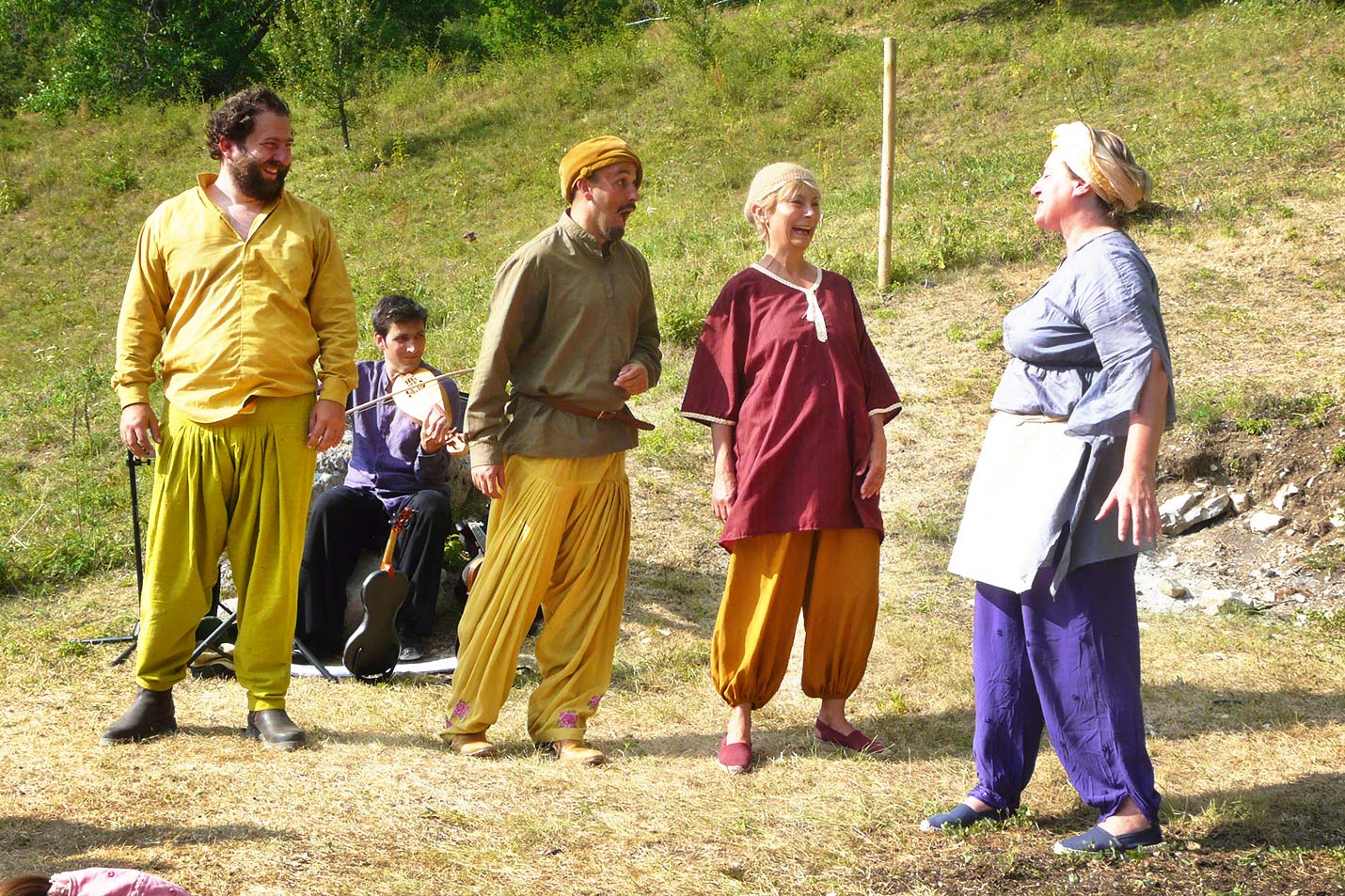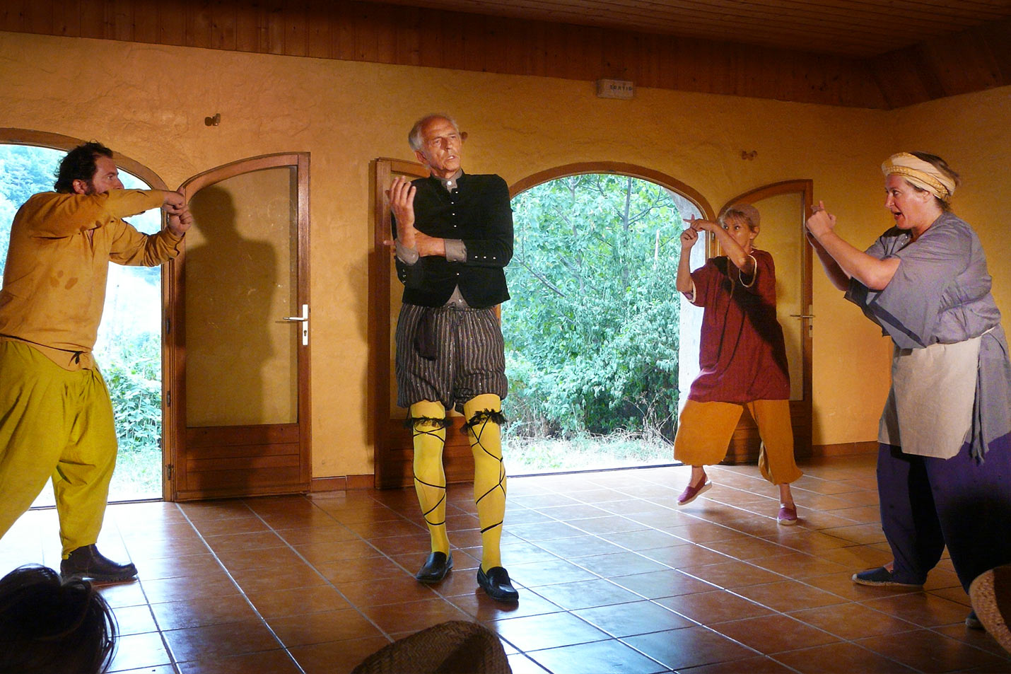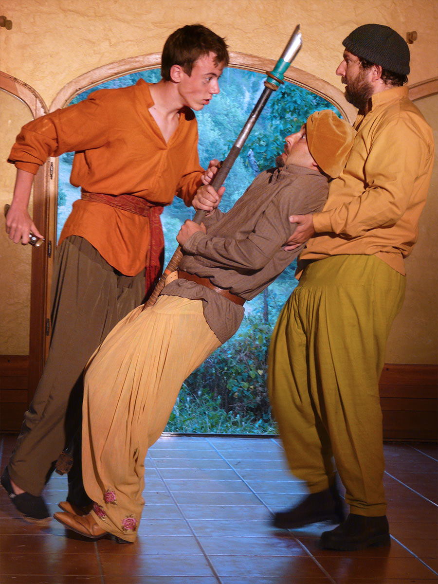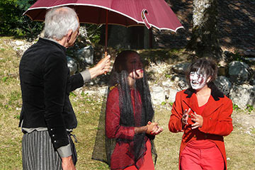 Après huit ans d’absence, Shakespeare revient pour la troisième fois à Grimone. Nous avons choisi La nuit des rois, une comédie qui célèbre, dans la même veine que Comme il vous plaira, l'ambiguïté: jeux de doubles et travestissements. Dans le royaume imaginaire d'Ilyrie, des désirs brûlent de toute leur puissance. Au centre de ces désirs: deux femmes Viola (travestie en jeune homme) et Olivia. La nuit des rois, c'est aussi une constellation de personnages d'une grande puissance. Ils mordent encore pour certains sur le Moyen-âge (le fou, le rabelaisien Sir Toby, la passion névrotique tirée de l’amour courtois du duc) ou sont résolument ancrés dans cette époque /révolution : 15e, 16e siècle. Viola et Olivia sont à notre sens des aventurières, des exploratrices du cœur qui préfigurent déjà Marivaux. Et enfin il y a l’anti-héros : le personnage de Malvolio. Derrière la dérision, le rire nous apparaît plus noir. Malvolio s’en prend au théâtre et à ses jeux de massacre, comme les puritains peu de temps après la mort de Shakespeare, le feront jusqu`à fermer les portes du théâtre élizabéthain. Ce sont toutes les facettes de cette comédie que nous souhaitons faire résonner à Grimone cette année.