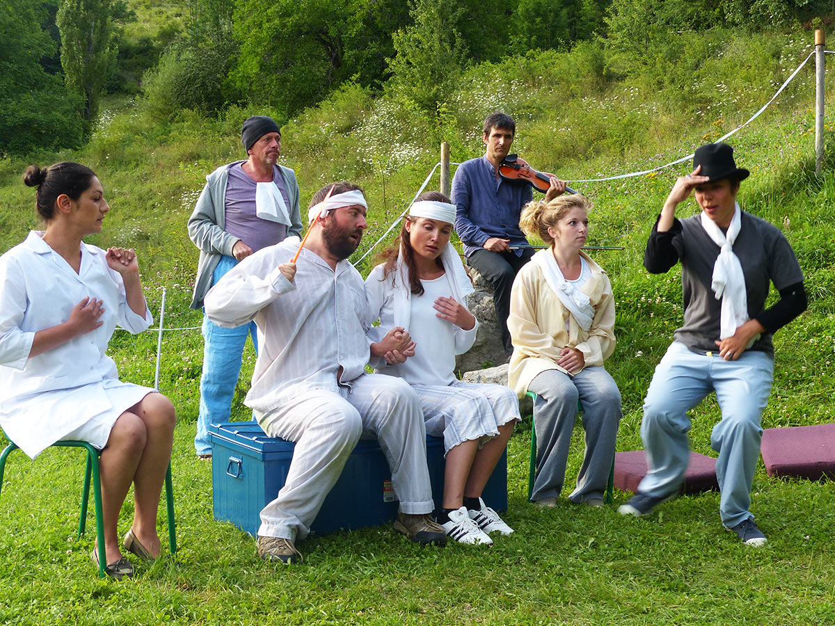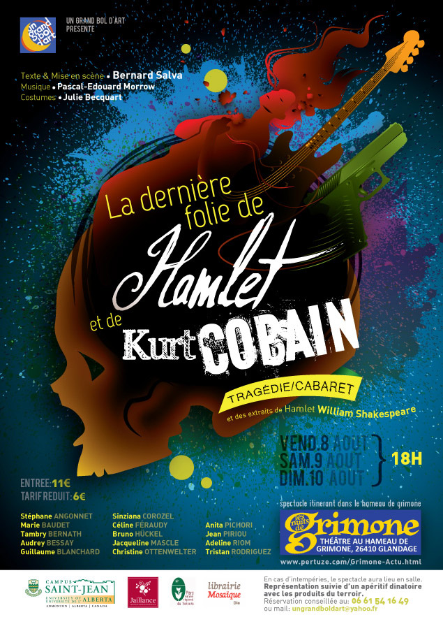 Comme toujours nous tenterons d'imaginer une scène qui fasse d'abord la part belle au plein ciel ( avec en particulier cette année un retour au théâtre déambulatoire dans le hameau) puis revienne ensuite à l'intimité de la salle. Notre récit suivra le parcours d'un Hamlet d'aujourd'hui, un jeune homme pris dans les affres de l'engagement dans un pays contemporain en voie de décolonisation. En écho, certains extraits de la pièce de Shakespeare ressurgiront. Au fil du spectacle, cinq bouffons aux allures monty-pythonesques, un cabaret Hamlet… Et toujours la musique à Grimone, aux fortes couleurs cette année d'un groupe mythique américain des années 90 : Nirvana. Parce que le rock a inventé aussi de nombreux Hamlet, à travers certains de ses héros tragiques…
