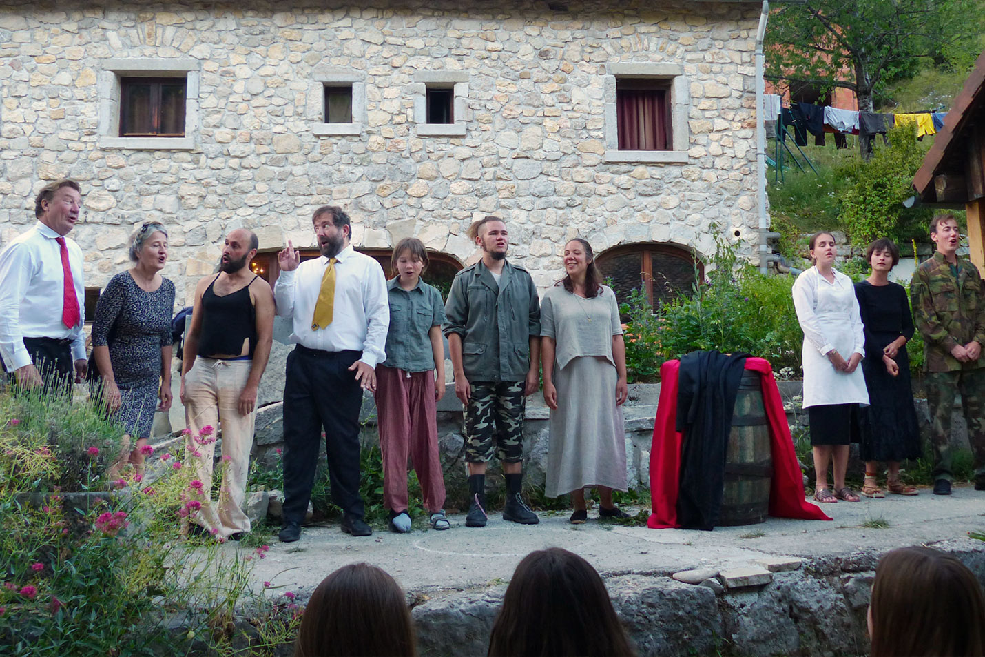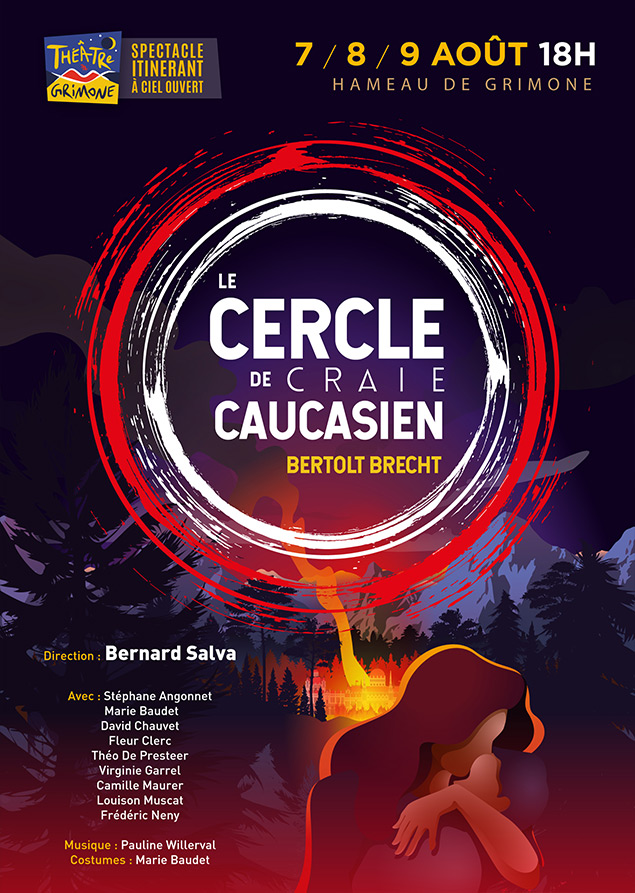 Le cercle de Craie Caucasien fait partie de ces pièces-paraboles où Brecht questionne les notions de maternité et de bonté, en temps de guerre. Elle est tirée d'une pièce chinoise. Brecht ne se contente pas de reproduire la vieille fable. Il la retourne de fond en comble tout en la mettant au service d'une critique sociale. Le baroque brechtien, son âpreté, pas si loin de Shakespeare, nous attire pour notre théâtre de plein ciel et déambulatoire. Nous partons sur les pas de Groucha, cette domestique en fuite dans les montagnes du Caucase avec pour seul balluchon un enfant, héritier du royaume, abandonné par la mère biologique. Face à elle un monde de puissants et de petits, révolutions et contre-révolutions.